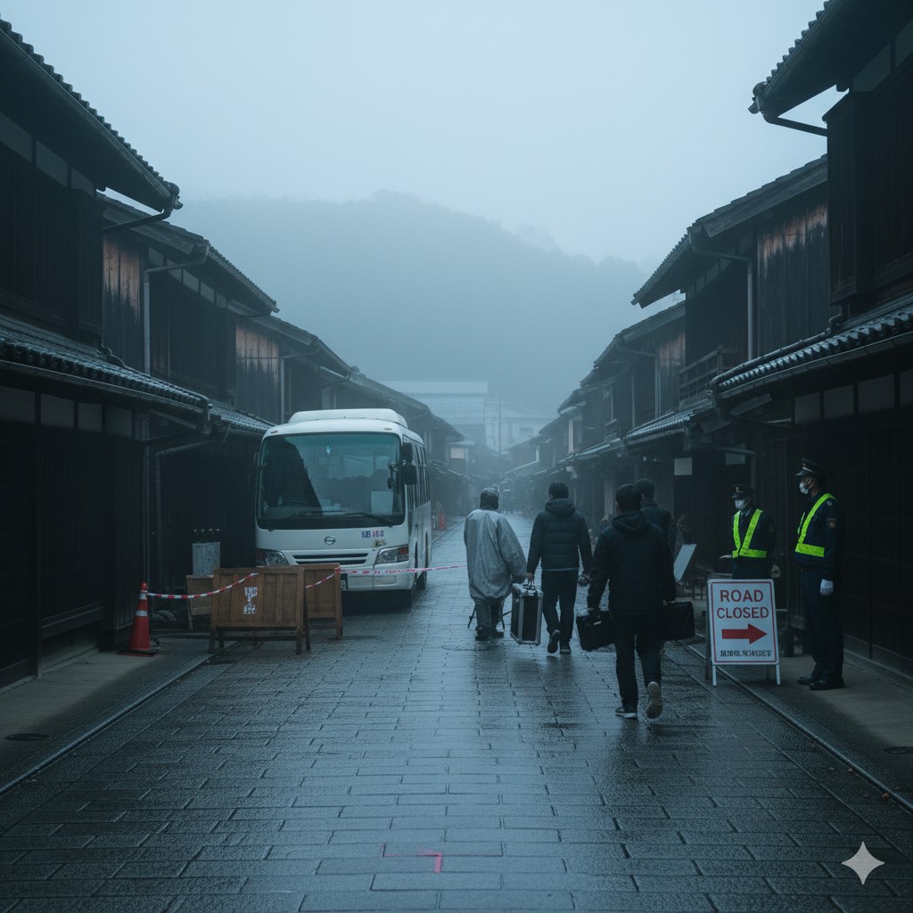 - ✔ 白いロケバス:駅前にひっそりと停車。中には機材ケースがぎっしり。