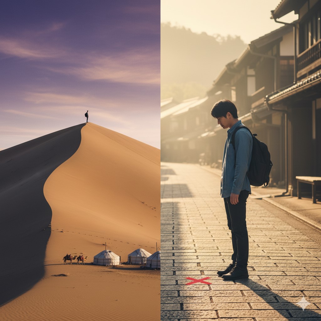 - モンゴル(広大な砂漠と遊牧民の生活)