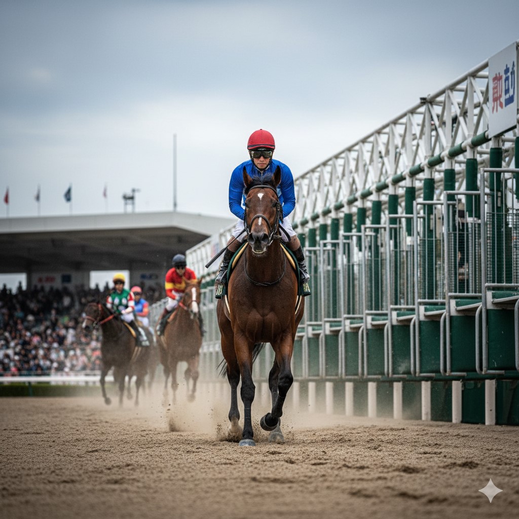 パドックでのシルエット、返し馬で力強く踏み込む姿、ゲートが開いた瞬間の爆発的な反応──