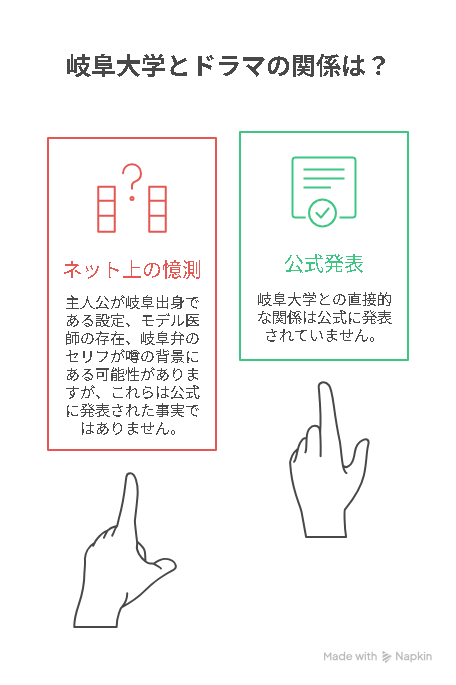 噂の出どころは、主人公・湖音波が岐阜出身って設定と、リアルな医師がモデルって情報が組み合わさってるっぽい。