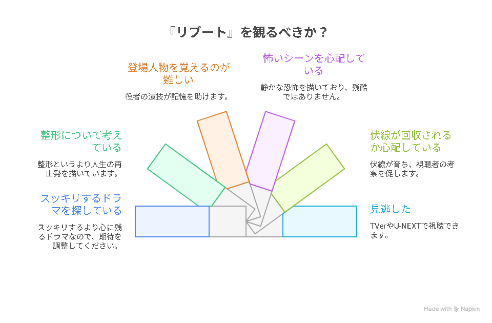 ─ 物語の流れを丁寧に追いながら、わかりやすいあらすじで理解を深めるのに役立つ記事。 - ▶ リブート キャスト一覧と相関図まとめ|永瀬廉×戸田恵梨香ほか
