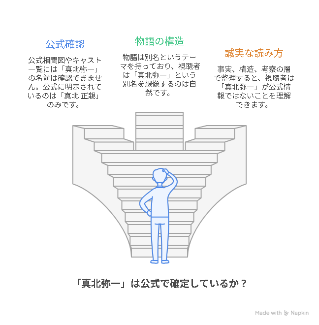 - 【重要】「真北弥一」は公式で確定している?──現時点での確認範囲を明示(次は「敵か味方か?」を判断する材料を“層”で整理します)