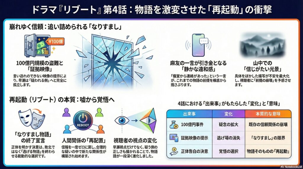 - リブート4話ネタバレあらすじ|時系列で“何が起きたか”だけを整理
