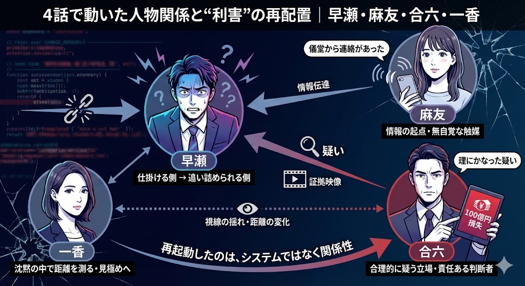 - 4話で動いた人物関係|早瀬・麻友・合六・一香の“利害”を整理