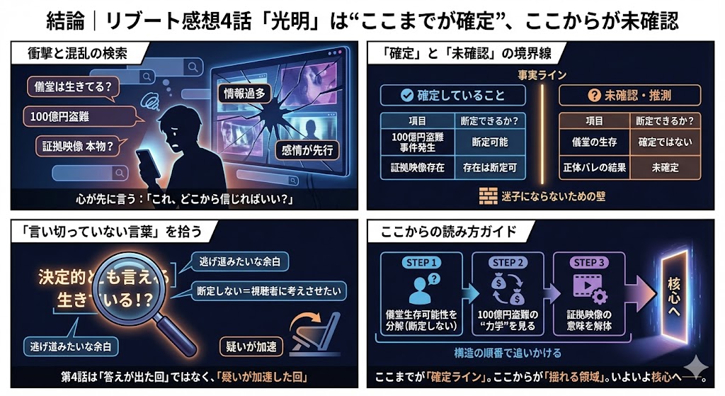 7. 結論|リブート感想4話「光明」は“ここまでが確定”、ここからが未確認