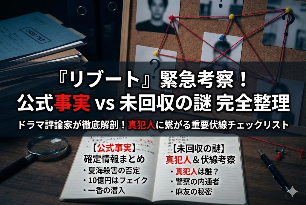 だからこそ今回は、ドラマ評論家としての意地にかけて、溢れかえる情報を私なりにガチで整理してみました。皆さんの「結局どうなっているの!?」という熱いモヤモヤに全力で寄り添い、少なくとも今わかっている範囲では何が「公式の揺るぎない事実」であり、何が「まだ謎に包まれた考察」なのかを、視覚的にもわかりやすく徹底的に切り分けていきます。