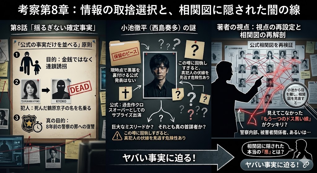 でもさ、サスペンスドラマを年間何十本も解剖してきた僕から言わせてもらうと、「情報が多すぎる時ほど、一度立ち止まって公式の事実だけを並べる」。これが考察の勝率を上げる鉄則なんです。
