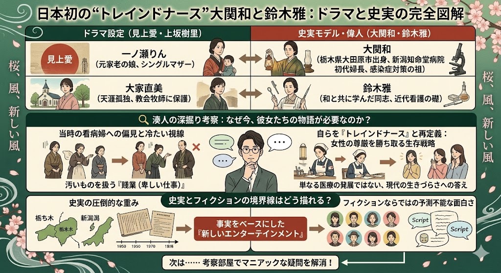 もちろん、放送前の現時点では公式に確認されていない点もあります。史実の「大関和」と「鈴木雅」の激動の人生を、吉澤智子さんのオリジナル脚本がどこまで取り入れ、どうフィクションとして昇華させるのか。歴史的解釈については、状況によって見方が変わる可能性があります