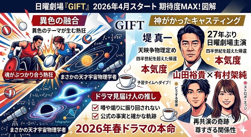 この『GIFT』という作品が、日曜の夜に僕たちへどんな景色を見せてくれるのか。最終的な判断は読む方それぞれですが少なくとも今わかっている範囲では、間違いなく2026年春ドラマの「大本命」だと全力で推させていただきます!