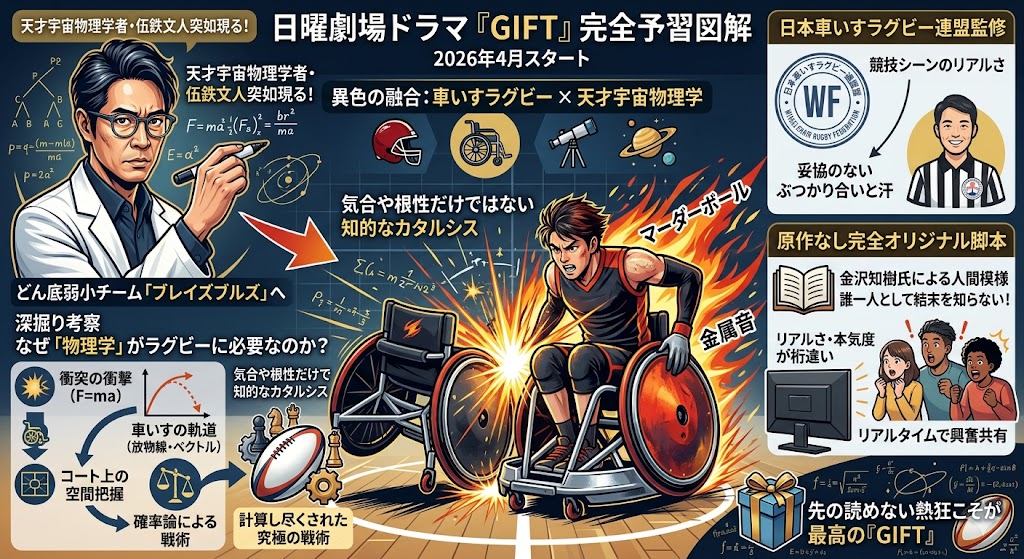 なぜ「日曜よる9時」なのか。それは、この枠が「明日からの過酷な月曜日を戦い抜くための、心のエネルギーチャージ」という特別な役割を担っているからです。泥臭い車いすラグビーと、天才物理学者の絶望からの再生を描く本作にとって、日本中が一番「明日への活力」を求めているこの時間帯こそが、最もふさわしい完璧な舞台設定なんですよね。