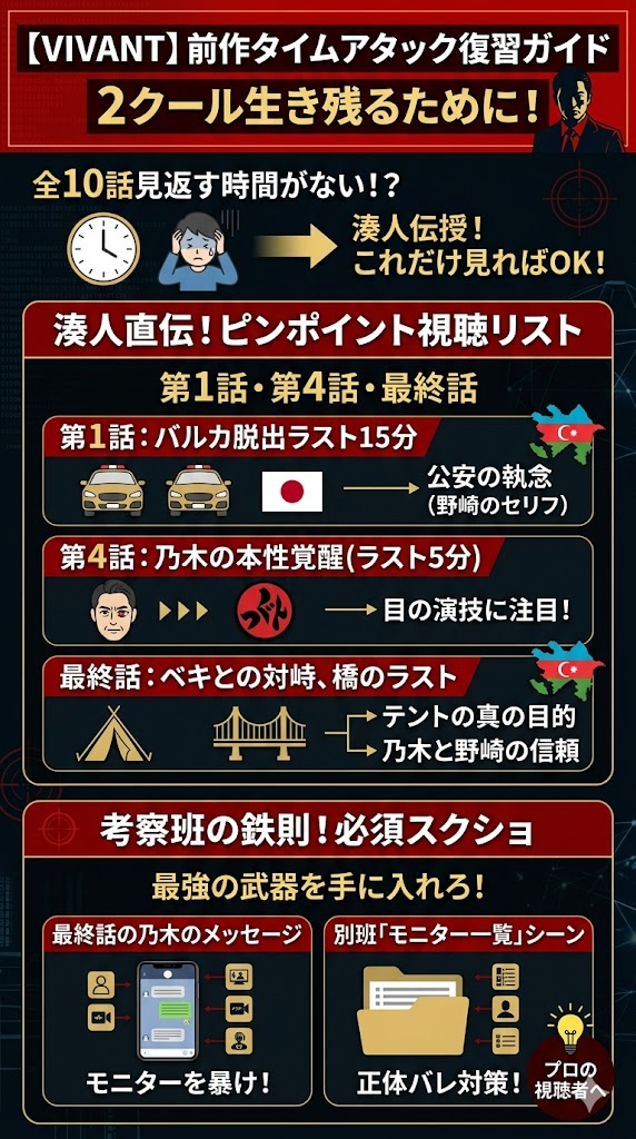 【放送前必見】2クールを生き残れ!VIVANT前作の伏線を完璧に復習する方法