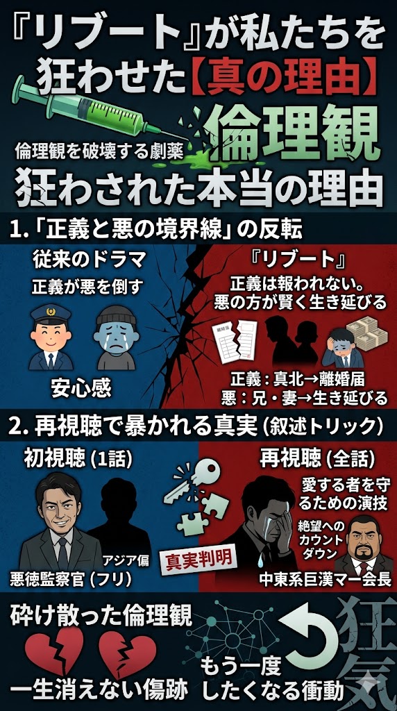 僕たちが狂わされた本当の理由。それは、このドラマが単なるエンタメの皮を被った、僕たちの倫理観を根底から破壊する「劇薬」だったからです。