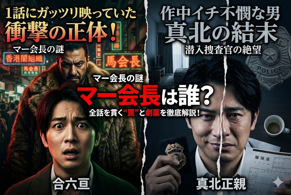 この記事では、僕たちを狂わせた「怪しい男たち(塚地さん、そして玉名!)」への愛あるツッコミから、1話に堂々と隠されていたマー会長の衝撃の正体を徹底解説。そして何より……僕が本作で最も心を揺さぶられた、いや、「全視聴者が泣いた作中イチ不憫なMVP男・真北(伊藤英明さん)」の切なすぎる結末について、僕の溢れんばかりの偏愛と熱量で語り尽くします。