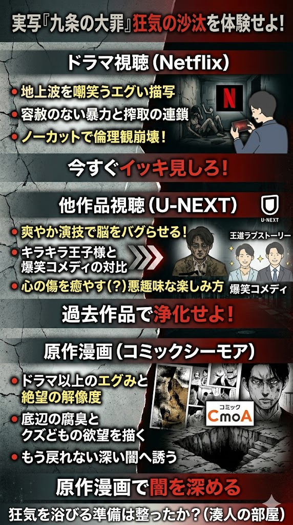 5. 【必見】狂気の沙汰をその目で確かめろ!実写『九条の大罪』視聴&関連情報