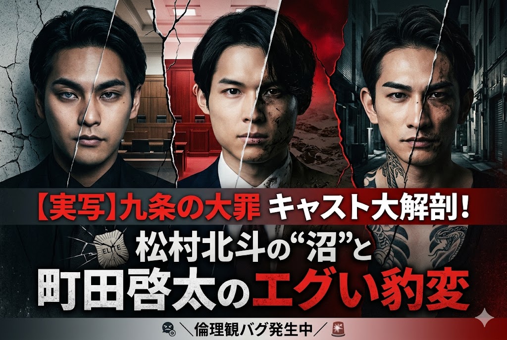 長年、数々の名作リーガルドラマを見届けてきた僕ですが、審査基準はただ一つ。「綺麗事ゼロで、人間の業をどれだけ容赦なく抉り出しているか」。その絶対的な基準において、現在配信・放送中の実写ドラマ『九条の大罪』は、控えめに言って「僕らの倫理観をぶっ壊す、近年最高峰の劇薬」だと断定します。