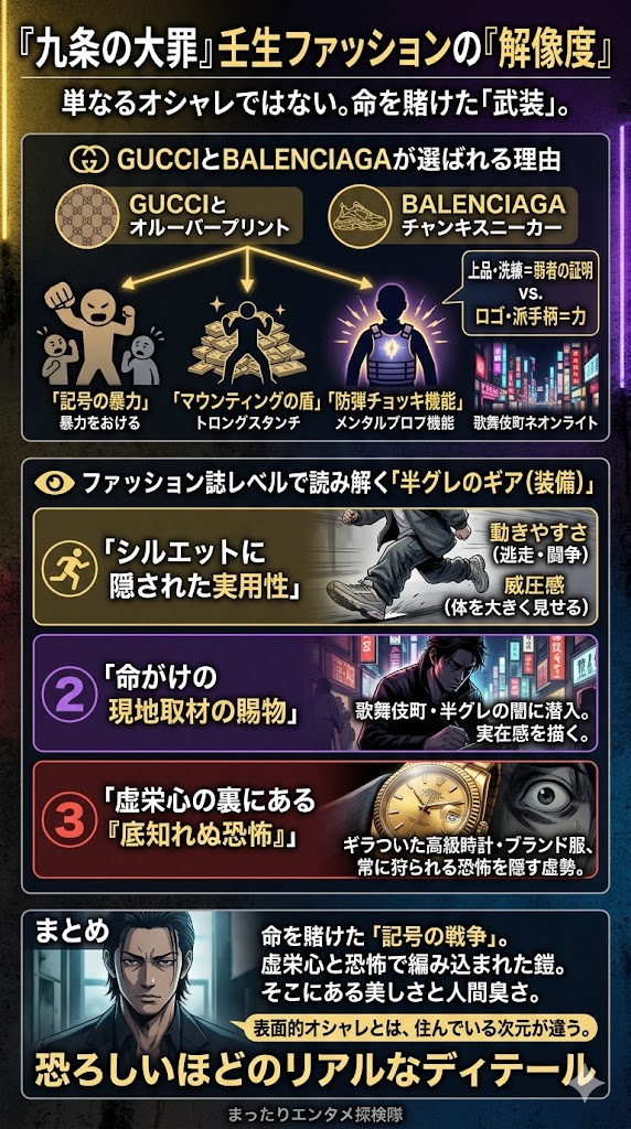僕が、そして骨の髄まで『九条の大罪』を愛する読者が確信していること。それは、壬生たちが身に纏うハイブランドは、服飾という名の「武装」であるということだ。