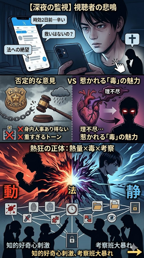 深夜のタイムラインから溢れ出しているのは、「時効まであと2日だったのに…辛すぎて見ていられない」「この兄弟に救いはあるのか?」という視聴者の悲鳴にも似た共感です。彼らはただドラマを消費しているのではなく、主人公たちと同じ「法への絶望」を追体験し、共に重い十字架を背負わされているのです。