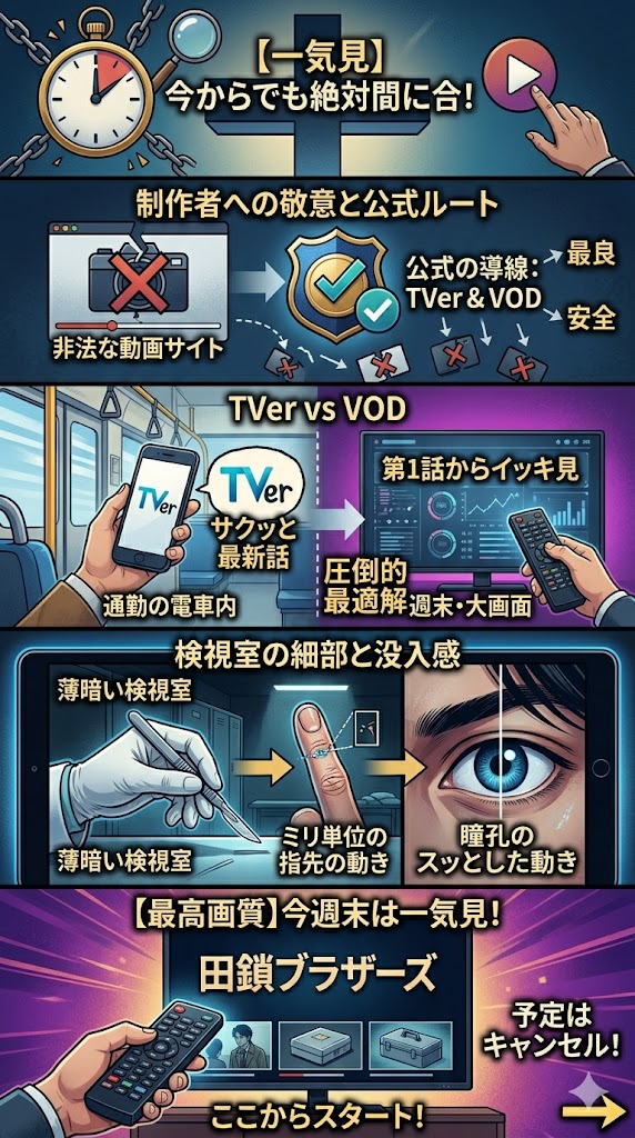 この記事では、現在放送中で圧倒的な反響を呼んでいるサスペンスドラマ『田鎖ブラザーズ』について、未視聴のあなたが「絶対に今すぐ見るべき理由」となる以下の3つのポイントを徹底解説します。