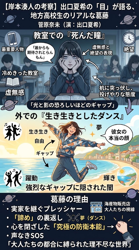 地方特有の「逃げられないレール」に縛られ、自分の本当の夢(ダンス)を声に出すことすら許されない環境。彼女のあの冷たい態度は、夢を否定されて傷つくことを恐れ、自ら心を閉ざした「究極の防衛本能」であり、声なきSOSに他ならない。