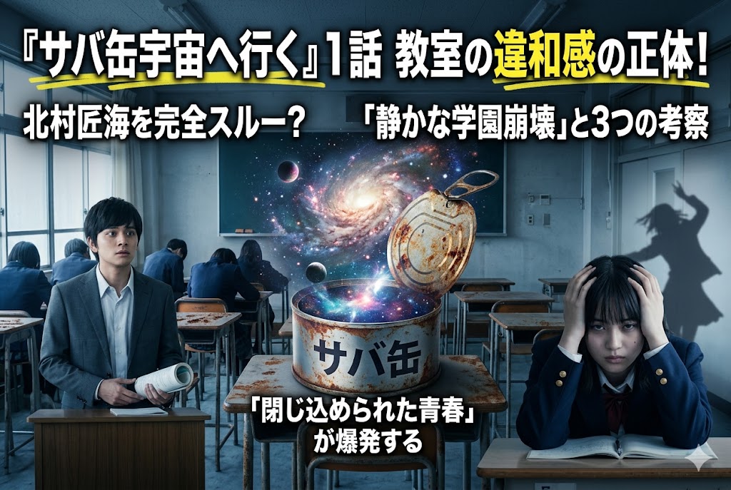 この記事では、『サバ缶、宇宙へ行く』第1話で視聴者全員が感じたであろう教室シーンの「違和感の正体」、生徒たちの無関心が生み出す「静かなる学園崩壊のリアル」、そしてそれが「2話以降の展開にどう繋がるのか」について徹底解説します!最後まで読めば、ただの学園ドラマだと思っていた本作の「真の恐ろしさと面白さ」が完全に理解できるはずだ!