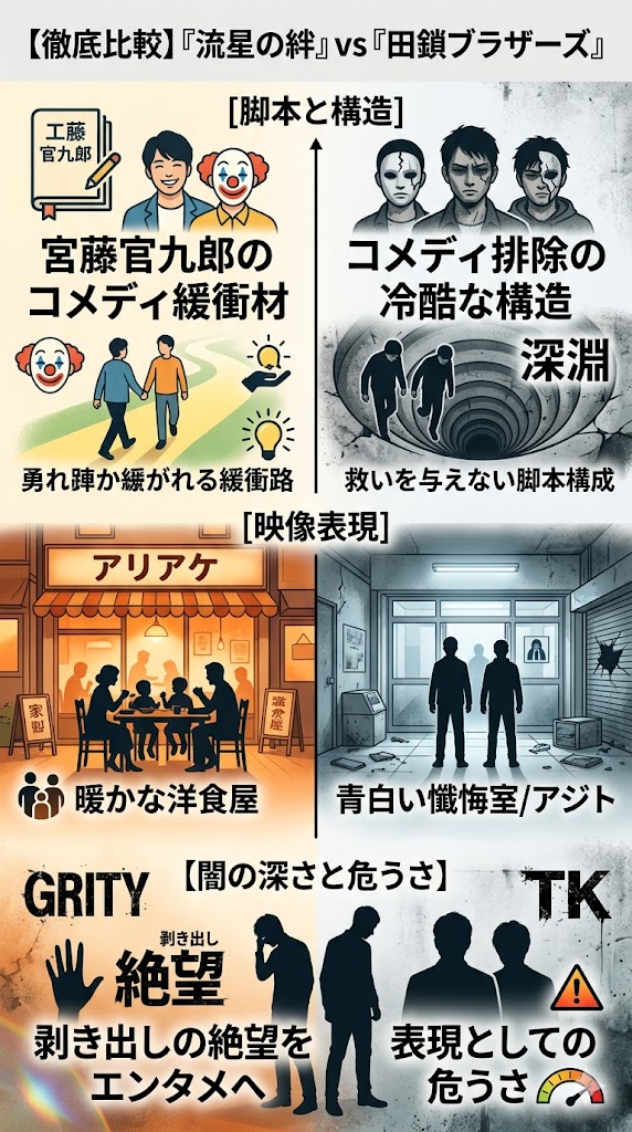 本作『田鎖ブラザーズ』が提示しているのは、エンタメとしての復讐ではない。逃げ場のない「血の呪縛」そのものなのだ。その圧倒的な違いを、演出と脚本のプロ的視点から徹底解説しよう。