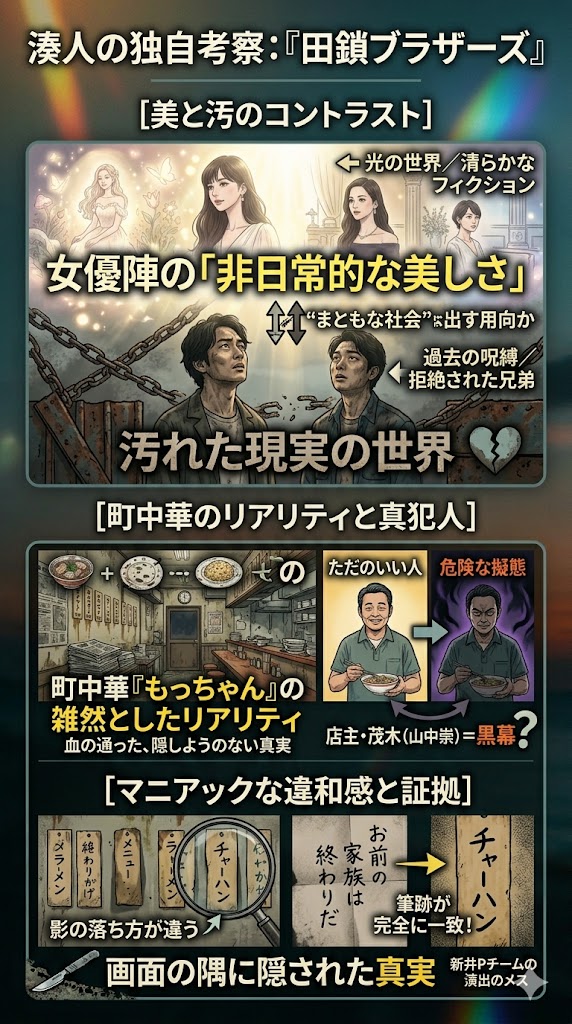 湊人の独自考察:美しすぎる女優陣と、黒幕「あの町中華」の謎