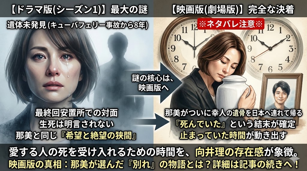 つまり、足立幸人は「死んでいた」という結末が、ここで完全に確定いたします。那美自身が自らの手で彼を“帰国(送還)”させることで、止まっていた彼女の時間がようやく動き出すのです。