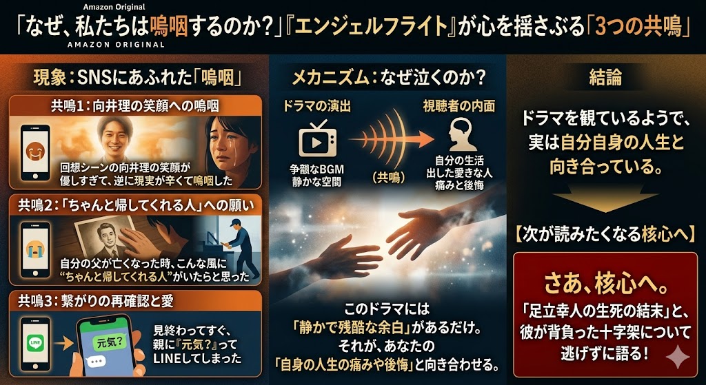 『エンジェルフライト』の配信直後から、SNSには「泣いた」「苦しい」「ありがとうが言いたい」という投稿が溢れ返りました。