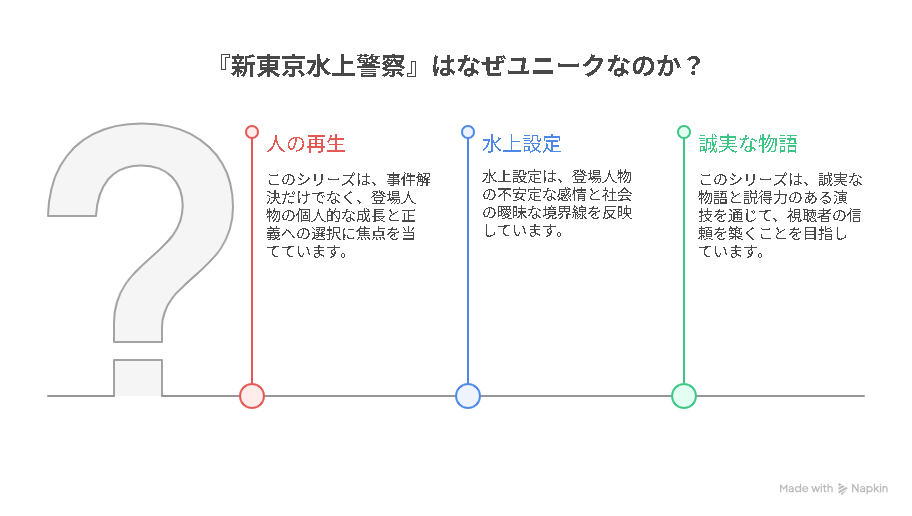 かつて存在した実在の 「東京水上警察署」 を、あえて“ドラマ世界で蘇らせる”という大胆な再構築――