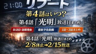 ドラマ『リブート』第4話『光明』はいつ放送?延期理由・2/8休止→2/15放送の整理、公式予告の視聴方法、1話〜3話の放送日まとめまで最新の公式情報ベースで丁寧に解説。未確認情報は断定せず整理しています。