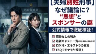 4/14スタートの春ドラマ『夫婦別姓刑事』。放送前に飛び交う「思想」や「スポンサー撤退」の噂の真相を、公式情報に基づき冷静に検証します。本日解禁の追加キャスト、原作なしの強み、ロケ地・エキストラ事情まで、疑問と不安をスッキリ解消する完全ガイド!