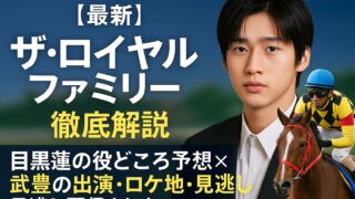あらすじ・作品紹介(みどころ) 武豊も出演!ザ・ロイヤルファミリー 第1話見どころ&裏舞台 TBS日曜劇場『ザ・ロイヤルファミリー』第1話を徹底考察!武豊の“リアルな存在感”、キャストの演技力、血統と継承をめぐる重厚な人間ドラマ、原作との違い、伏線、撮影裏話まで深掘り解説。感情を揺さぶる見どころ満載のレビューです。 2025.10.05 あらすじ・作品紹介(みどころ)