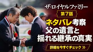 やばい、心が持っていかれた──「ザ・ロイヤルファミリー」第7話。それは、ただの“ドラマの一話”なんかじゃない。もうね、心の深いところに、ズドン!とくる何かがあった。僕は画面越しに見ていたはずなのに、気づけば手が震えてて、胸の奥がジリジリ熱く...