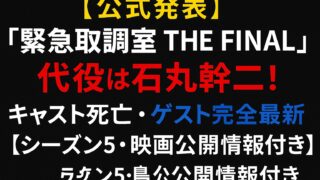 あらすじ・作品紹介(みどころ) 【公式発表】『緊急取調室 THE FINAL』代役は石丸幹二!キャスト死亡・ゲスト完全最新版【シーズン5・映画公開情報付き】 『緊急取調室 THE FINAL』2025年劇場版に向けたキャスト代役情報、市川猿之助→石丸幹二の変更、大杉漣ら故人キャストの記録、豪華ゲスト一覧、配信・放送・再放送まで完全網羅。全シーズンのつながりを感情とともに辿る総合ガイド。 2025.09.18 あらすじ・作品紹介(みどころ)