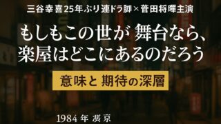 あらすじ・作品紹介(みどころ) 三谷幸喜25年ぶり連ドラ脚本×菅田将暉主演『もしもこの世が舞台なら、楽屋はどこにあるのだろう』の意味と期待の深層 三谷幸喜が25年ぶりに脚本を手がけ、菅田将暉が主演する話題の新ドラマ『もしもこの世が舞台なら、楽屋はどこにあるのだろう』。1984年渋谷を舞台に描かれる青春群像劇の意味、キャスト情報、見どころをドラマ評論家・岸本湊人が情感たっぷりに深掘り考察します。 2025.09.03 あらすじ・作品紹介(みどころ)