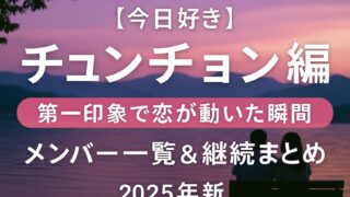 出演者プロフィール・人気ランキング 🥇 【今日好きチュンチョン編】第一印象で恋が動いた瞬間|メンバー一覧&継続まとめ【2025最新】 ABEMA『今日、好きになりました。チュンチョン編』2025最新情報。第一印象で恋が動いた瞬間、メンバー一覧・継続メンバーの心理・相関図を白瀬叶音が徹底分析。春川で生まれた“恋の矢印”を、物語と心理で読み解きます。 2025.10.18 出演者プロフィール・人気ランキング
